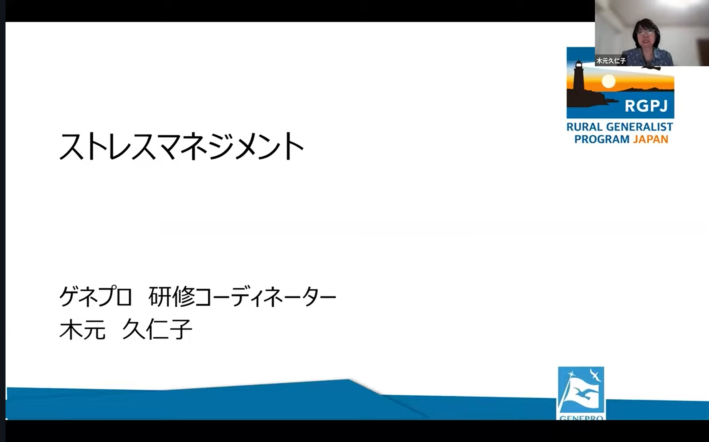 今回は、ゲネプロの研修コーディネーターであり、カウンセラーとしての豊富な経験も持たれる木元先生が講師を務め、「ストレスマネジメント」をテーマに講義が行われることとなりました。